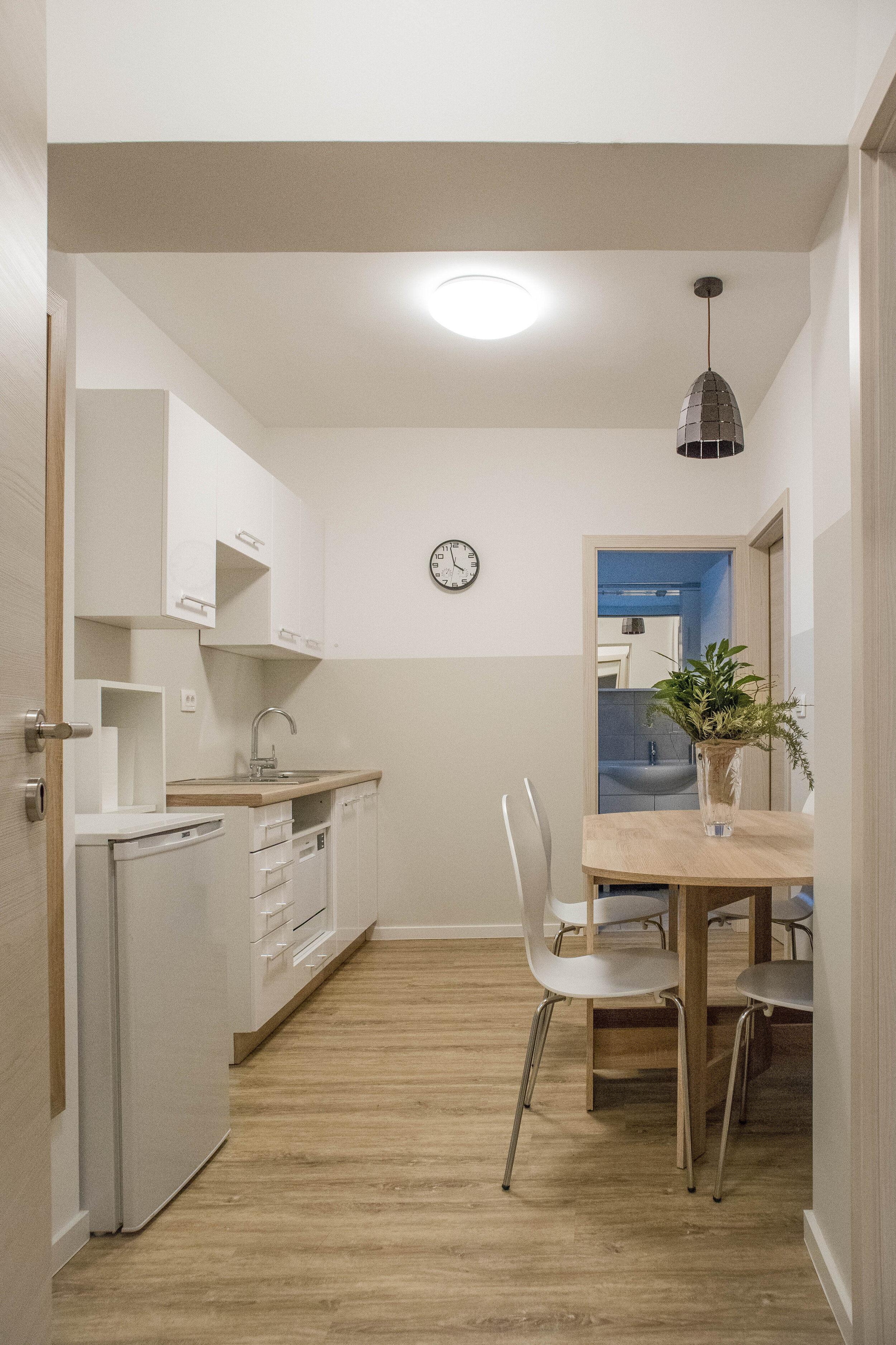 • Private kitchen with induction stove, refrigerator, smaller freezer and dishwasher